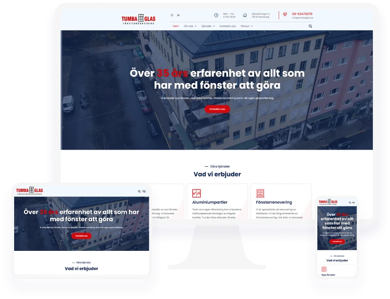Tumba Glas AB is an established glass and glazing company that entrusted us with developing a modern, clear, and functional website. The goal was to strengthen their digital presence and make it easy for both private individuals and businesses to get in touch.